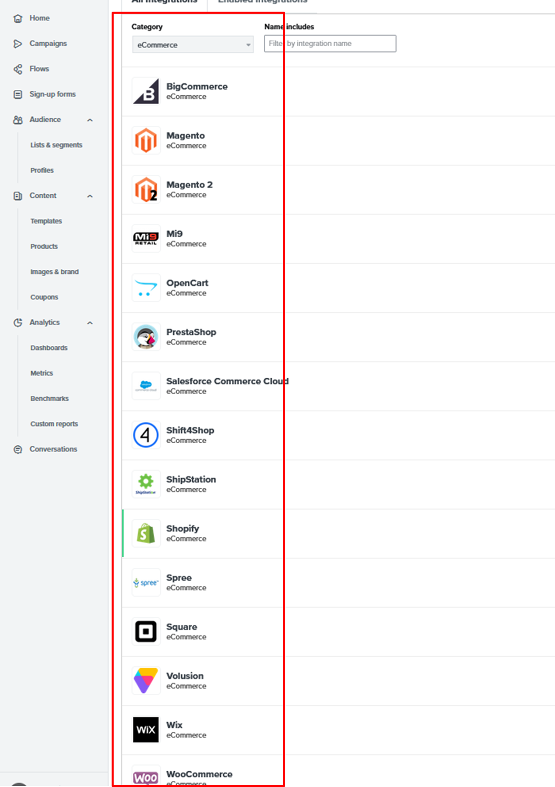→Integration with E-commerce Platforms: Klaviyo integrates seamlessly with popular e-commerce platforms like Shopify, Magento, and WooCommerce, Square, Wix , Open cart allowing you to sync your customer and order data for more targeted campaigns and personalized messaging.